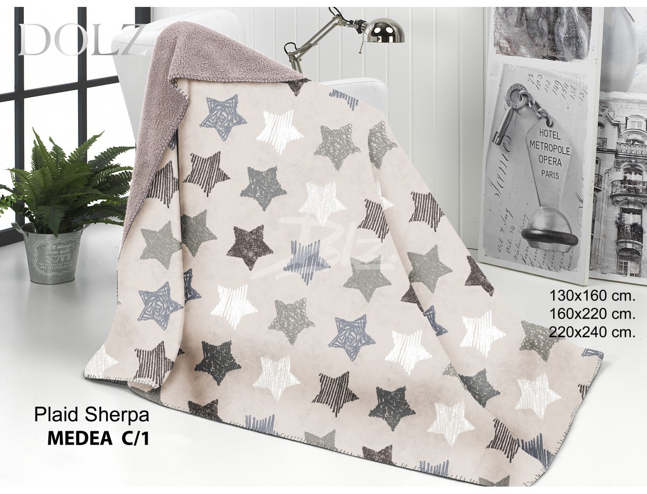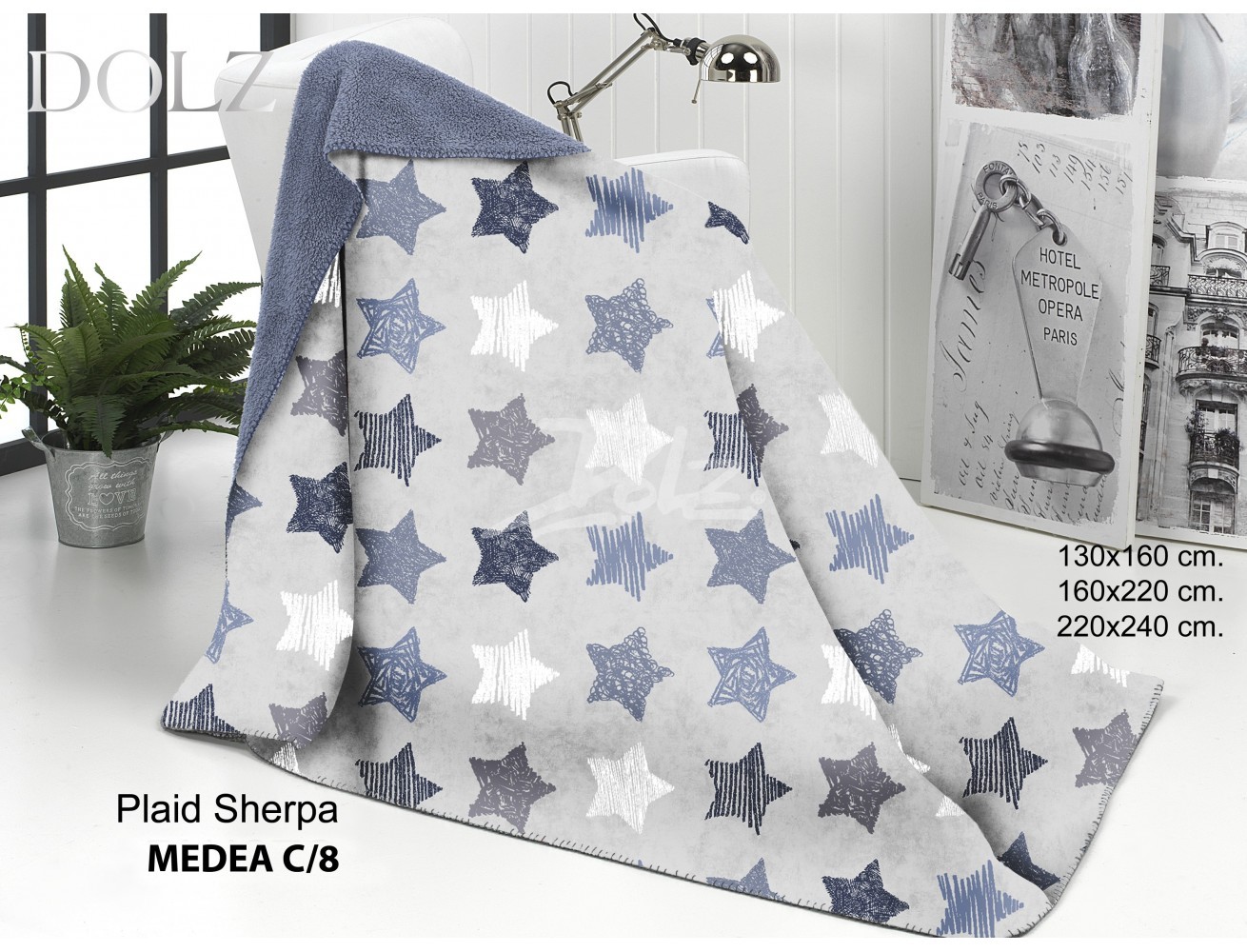 Esta hermosa manta, de la marca Dolz, tiene un extraordinario tejido, muy suave al tacto. La plaid medea está confeccionada con sedalina y en su interior con borreguino de hermosos colores. No desprende pelusas.